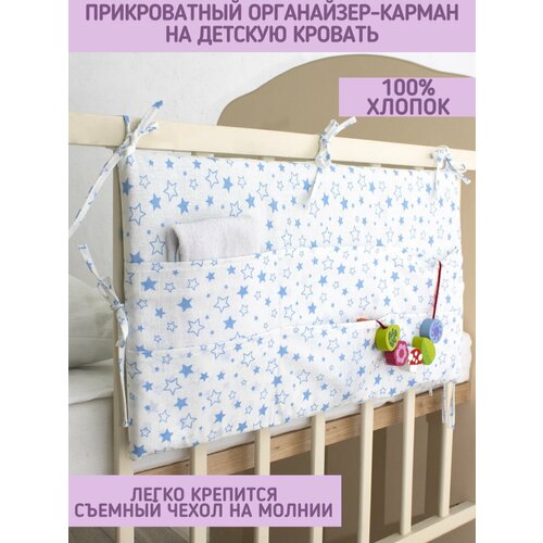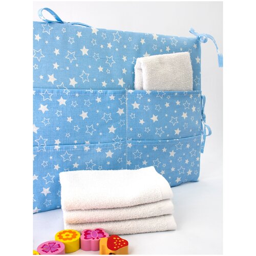 Органайзер / карман на детскую кроватку Малышок, синий, белые и голубые звезды
