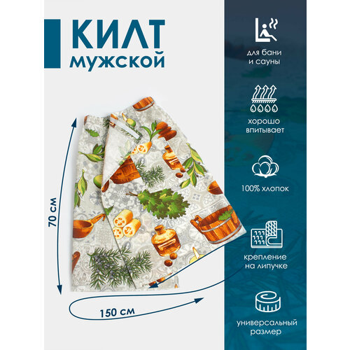 Килт банный мужской Хлопковый Мир килт для бани и сауны, хлопок 100%