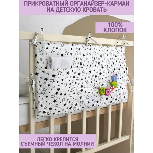 Органайзер / карман на детскую кроватку Малышок, белый, черные и белые звезды