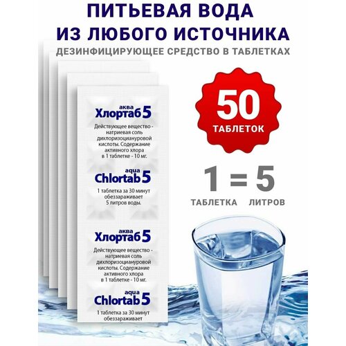 Таблетки Хлортаб Аква 5 дезинфицирующее средство в таблетках, 50 шт. в уп.