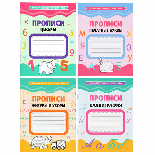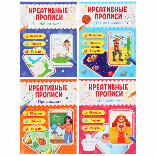 УИД Прописи цветные креативные, бумага, 16х21см, 16стр, 4 дизайна, 40 штук