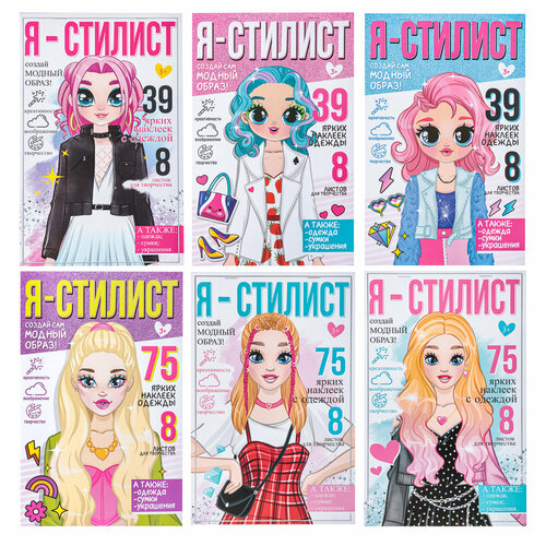 Хоббихит Блокнот с многоразовыми наклейками Я стилист, бумага, ПВХ, 15х22,5х0,2см, 4-6 дизайнов, 16 штук