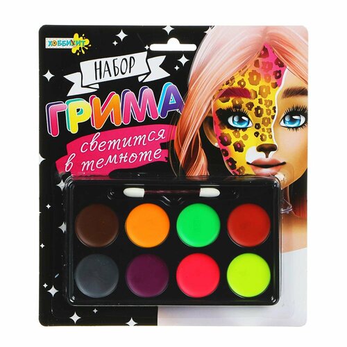 Хоббихит Набор грима, люминесцентный, 8цв, аппликатор, 19,5х17,5см, масляный грим, пластик, 12 штук