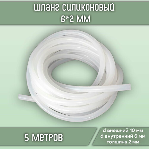 Шланг (трубка) силиконовый универсальный пищевой внутренний диаметр 5 мм, толщина стенки 2 мм, длина 10 метров