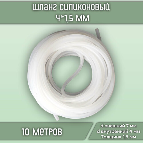 Шланг (трубка) силиконовый универсальный пищевой, внутренний диаметр 7 мм, толщина стенки 1,5 мм, длина 10 метров