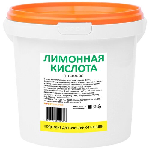Лимонная кислота в ведре (1 кг) HOBBYHELPER