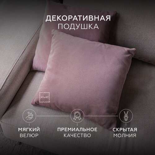 Декоративная подушка 40х40 HomelyWorld, фиолетовая, велюр, съемный чехол