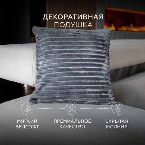 Декоративная подушка 40х40 HomelyWorld, серая, велюр, съемный чехол