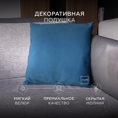 Декоративная подушка 40х40, HomelyWorld, cиний, велюр, съемный чехол