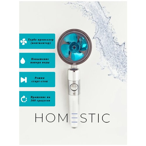 Турболейка / Насадка для душа / Лейка для душа с пропеллером, повышение напора воды, лейка для душа с 2 режимами старт-стоп