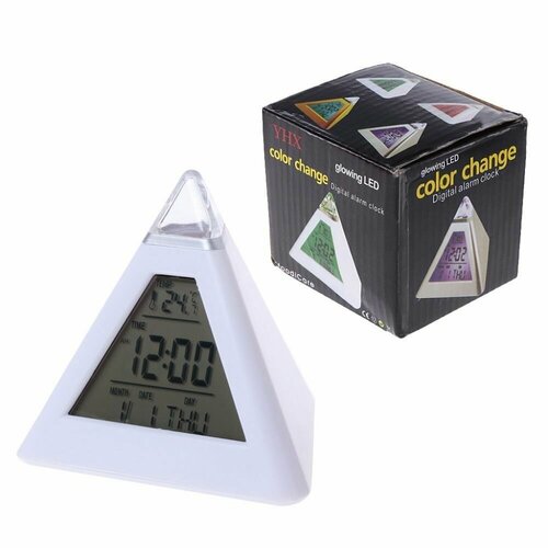 Будильник "Пирамида", 7 цветов дисплея, термометр, подсветка