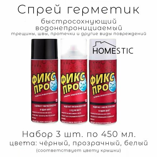 Жидкая резина герметик Фикс Про 3в1, чёрный, прозрачный, белый, 3 шт, 450мл, клей строительный