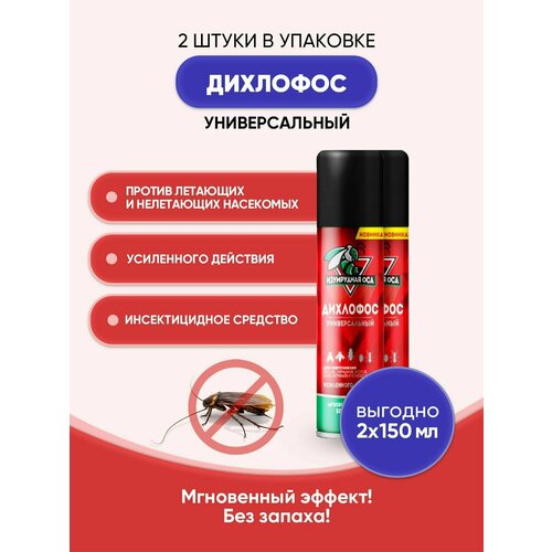 Средство от насекомых Изумрудная оса дихлофос универсальный усиленного действия для уничтожения летающих и ползающих насекомых, 150 мл