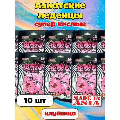Китайские леденцы кислые конфеты Sour Candy карамель со вкусом Клубники 10 шт/Азиатские сладости