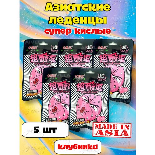 Китайские леденцы кислые конфеты Клубника 5 шт/Азиатская карамель