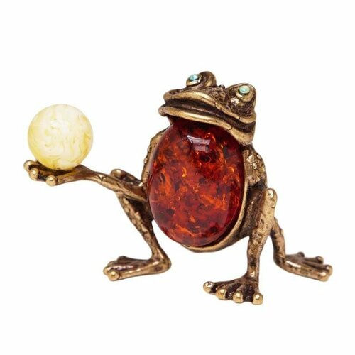 Фигурка Лягушка с жемчужиной (бронза янтарь стразы) 340 Хорошие Вещи