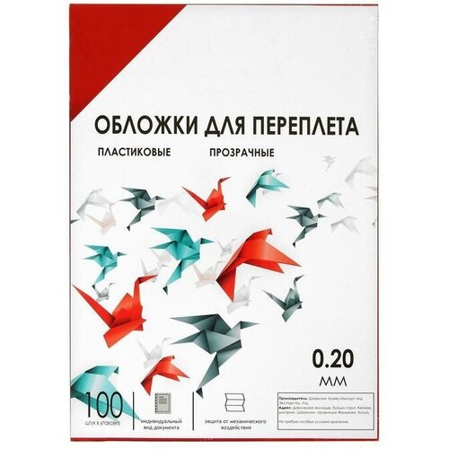 Обложки для переплета/Материалы для переплета/Обложки для переплета A4, 200 мкм, 100 листов, пластиковые, прозрачные красные
