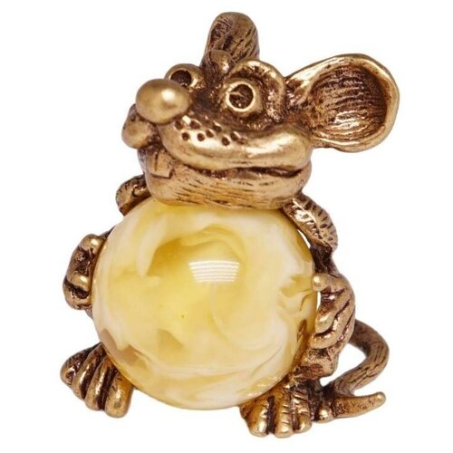 Фигурка мини "Мышь сытая" (янтарь белый, латунь) 3872 Хорошие Вещи