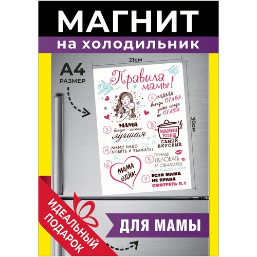 Правила мамы подарочек на день рождения. Магнит на холодильник прикольный большой А4. отличный не дорогой подарок по любому поводу