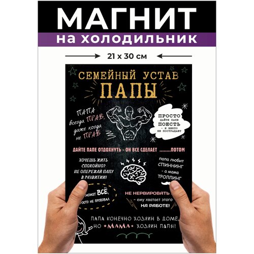 Магнит на холодильник А4, Семейный устав папы. подарок папочке с правилами прикольный, семейные ценности и традиции