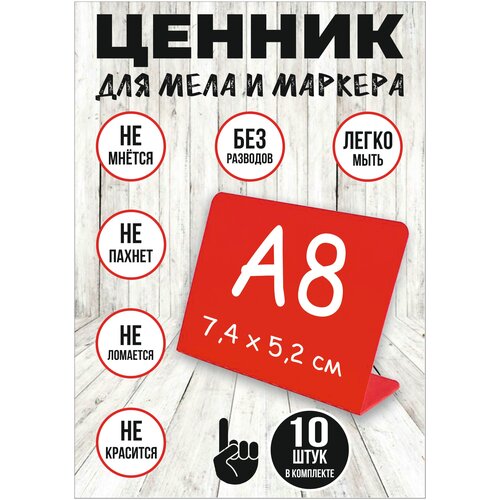 Ценник маркерный, меловой, двухсторонний, на бутылки, вешалки, подвесы, универсальный А8 (74x52 мм), 10 шт