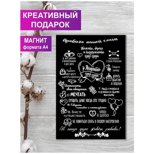 Магнит на холодильник, сувенирный магнит Правила семьи (21 см х 30 см, черный)