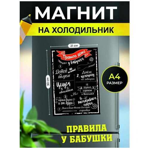 Магнит на холодильник, сувенирный магнит Правила бабушки (21 см х 30 см, черный)