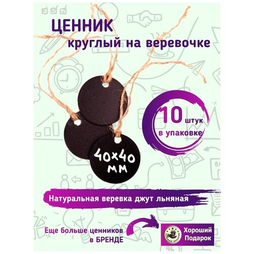 Ценник маркерный, меловой, двухсторонний, круглый, 40х40 мм, подвесной на бечевке, 25 штук