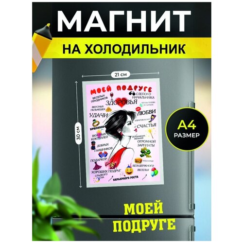 Магнит на холодильник, сувенирный магнит Правила счастливой женщины (21 см х 30 см, розовый)