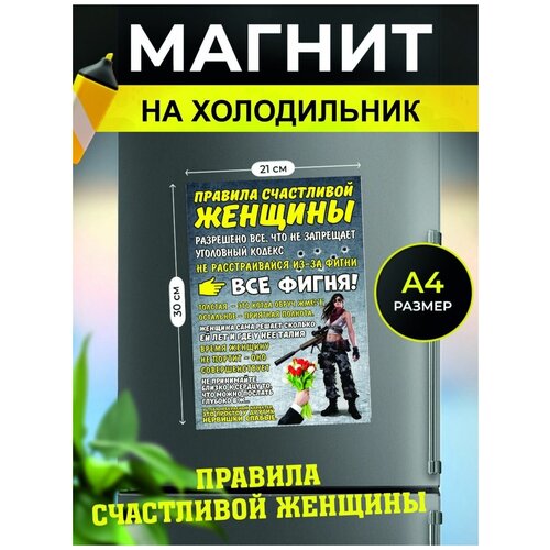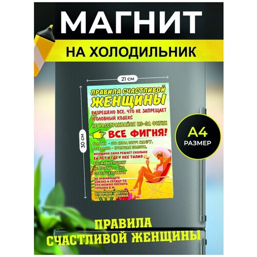Магнит на холодильник, сувенирный магнит Правила счастливой женщины (21 см х 30 см, белый)