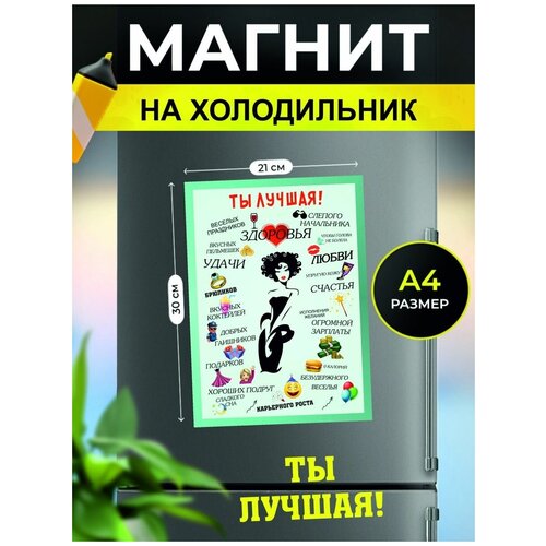 Магнит на холодильник, сувенирный магнит Ты лучшая (21 см х 30 см, зеленый)