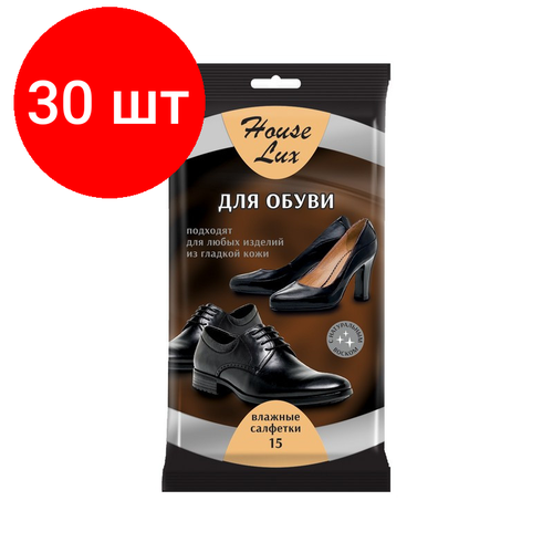Влажные салфетки для обуви House Lux для ухода за изделиями из кожи 15 шт HOUSE LUX