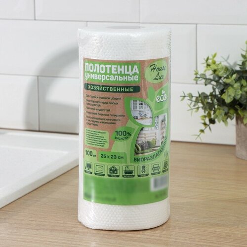 Салфетки универсальные House Lux Eco, 25×23 см, вискоза 100 %, 45г/м2, 100 шт в рулоне