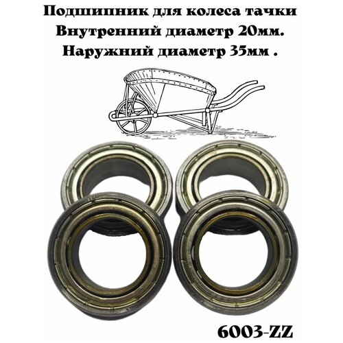 Подшипники для колес строительных или садовых тачек 20ммх35мм zz, 4 шт