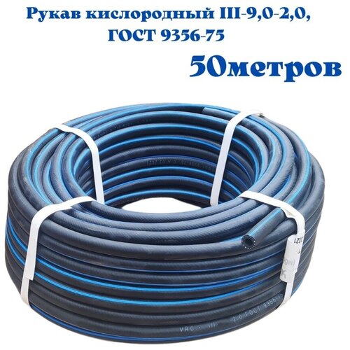 Рукав кислородный III-9-2,0; (с синей полосой) намотка 50 метров, ГОСТ 9356-75
