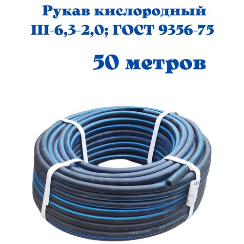 Рукав кислородный III-6,3-2,0; (с синей полосой) намотка 50 метров, ГОСТ 9356-75