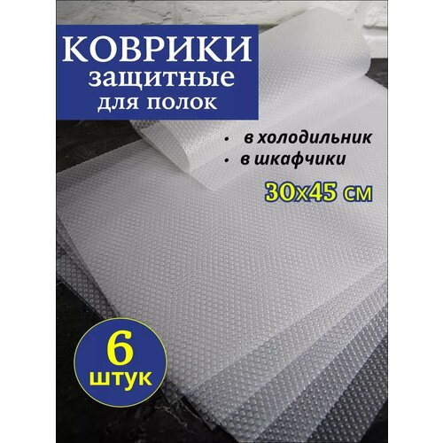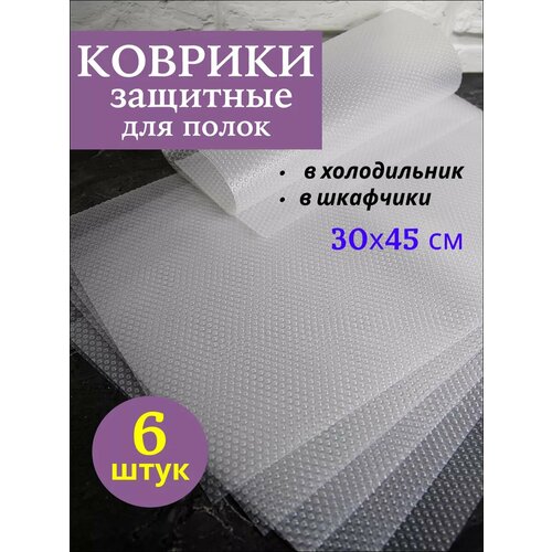 Коврики для защиты холодильника 30х45 см, 6 штук, прозрачные, полимерные, на полку