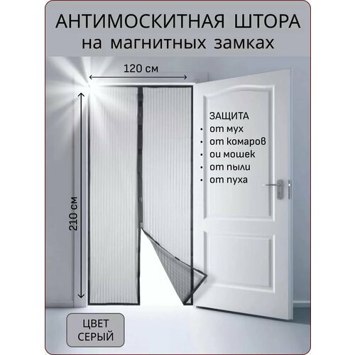 Москитная сетка на дверь раздвижная на магнитах 210х120 см
