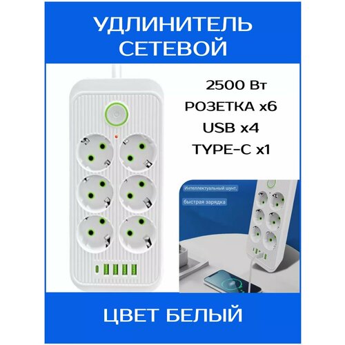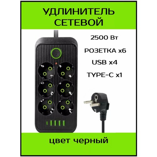Удлинитель сетевой с usb и type-c с заземлением