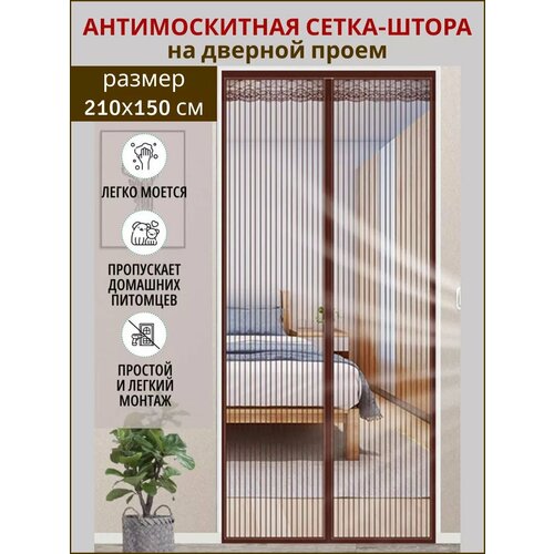Москитная сетка на дверь раздвижная на магнитах 210х150 см