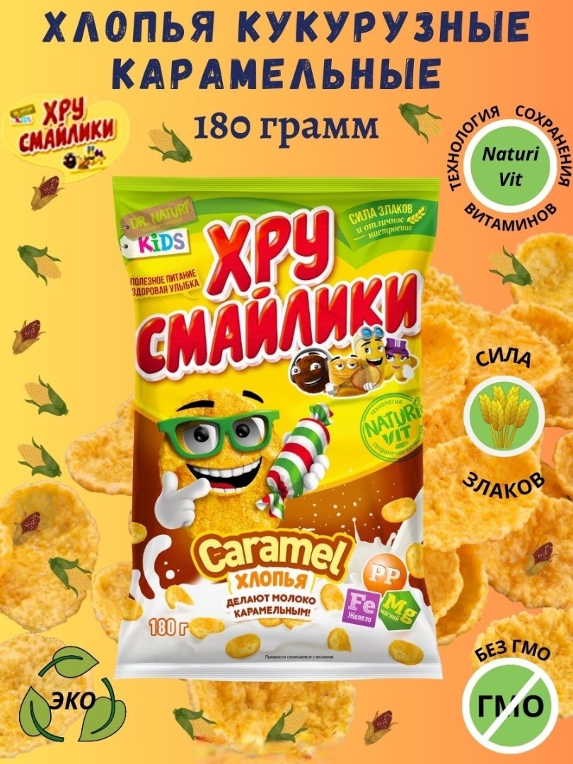 Готовый завтрак Хру Смайлики Хлопья кукурузные Молочно-карамельные, 180 г