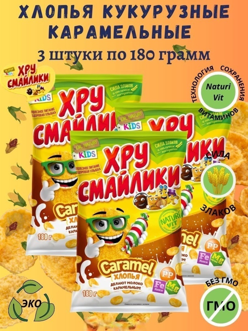 Набор Хлопья кукурузные "Молочно-карамельные" "Хрусмайлики" 180г х 3шт