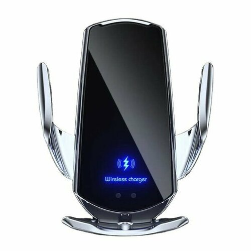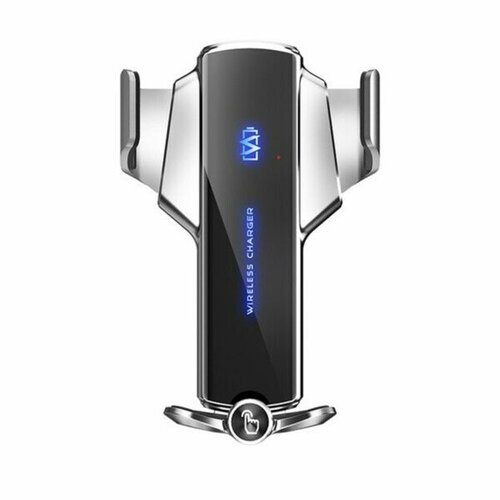 Держатель автомобильный для смартфонов с беспроводной зарядкой Q12, серебро (ак-р 300 mAh)