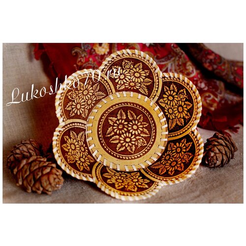 Тарелка из бересты 6 лепестков "Ромашки"