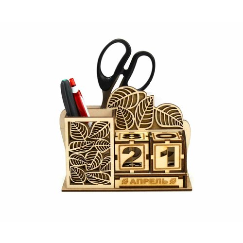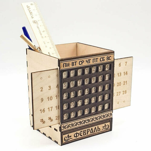 Карандашница деревянная с календарем