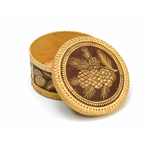 Шкатулка из бересты большая круглая "Шишки"