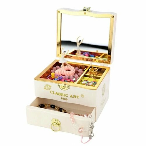 Музыкальная шкатулка с балериной и зеркалом, механическая, белая