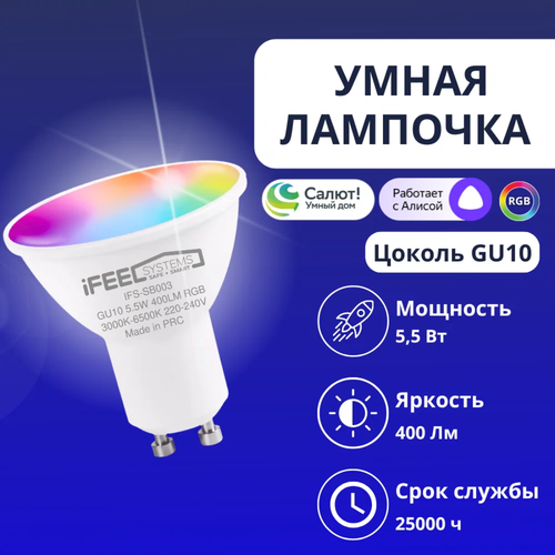 Умная лампочка iFEEL Spot GU10, RGB с Wi-Fi, Алисой