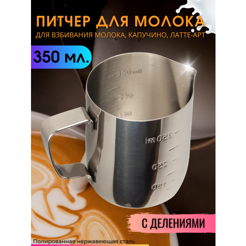 Питчер для молока 350 мл IlleChef с двойной шкалой молочник металлический для кофе, нержавеющая сталь