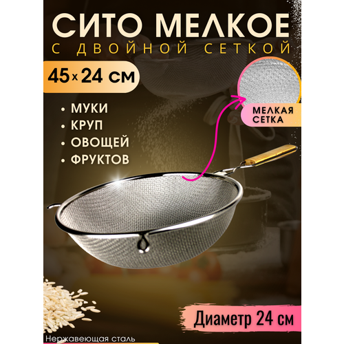 Сито мелкое конусное металлическое 12 см/ файн стрейнер барный/ сито кухонное для муки, чая, кофе